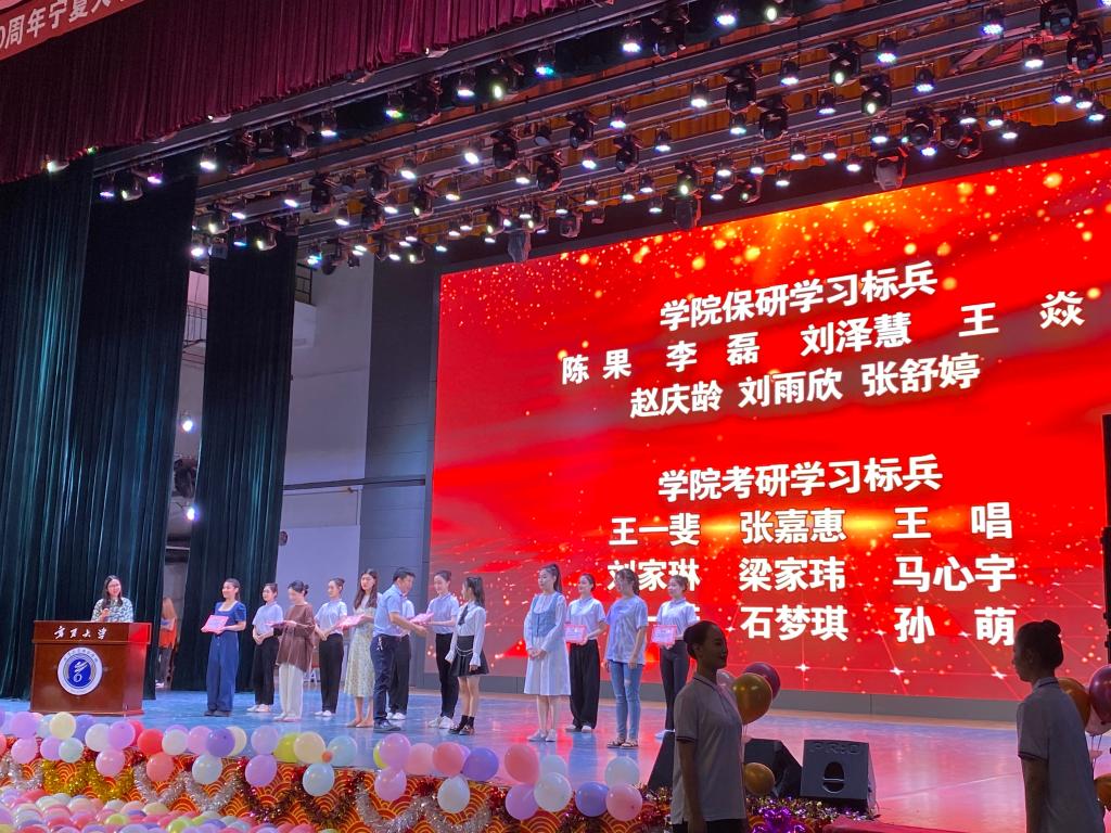 音乐学院领导与与会嘉宾为受表彰学生颁奖。随后,优秀毕业生代表庞腾、郝玲发言,他们深情表达了对美好的大学生活的留恋与不舍,对人生新征程的期许与执着。在未来的日子里,他们将始终铭记澳门十大信誉网赌大全“尚德 勤学 求是 创新”的校训与“不怕困难、不畏严寒、根深叶茂、本固枝荣”的沙枣树精神,用智慧与汗水抒写出宁大人新的辉煌。