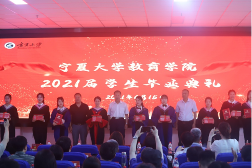 典礼在庄严的国歌声中拉开序幕,教育学院党委副书记江伟宣读《关于表彰2021届院级优秀毕业生的决定》,学校办公室副主任马亮等相关职能部门领导为院级优秀毕业生代表颁奖、赠送毕业礼物;教师代表马志颖、本科毕业生代表2017级教育技术学专业史燕青、研究生毕业生代表2018级应用心理学专业孙逸舒分别在毕业典礼上发言;教育学院党委书记党小龙代表学院接受毕业生代表赠送礼物;本科校友代表银川市兴庆区月牙湖教育集团大塘分校执行校长、兴庆区乡村名师工作坊主持人何德在会上发言;研究生校友代表宁波大学教师教育学院教授、博士生导师郑东辉通过线上形式为毕业生提出殷切希望。
