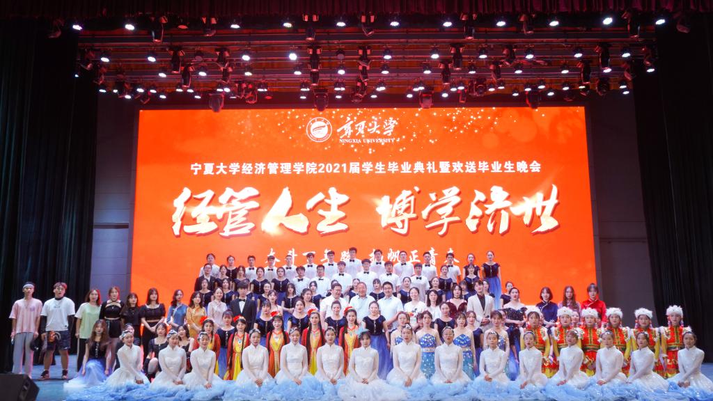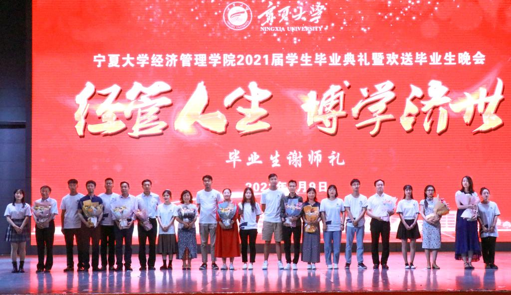 【澳门十大信誉网赌大全新闻中心讯 经济管理学院】6月9日晚,经济管理学院(西部发展研究院)2021届毕业典礼暨欢送毕业生晚会于文萃校区大学生活动中心举行。经济管理学院(西部发展研究院)领导班子成员,康师傅银川分公司人资处企业文化建设专员李静,粉笔教育宁夏分校副校长何刚,粉笔教育宁夏分校运营总监冯立斌,澳门十大信誉网赌大全学生会、各兄弟学院团学组织代表,学院各办公室、各系、各支部负责人,学院教师代表以及全体在校本科生、研究生参加了此次毕业典礼。典礼由学院党委副书记程胜利主持。