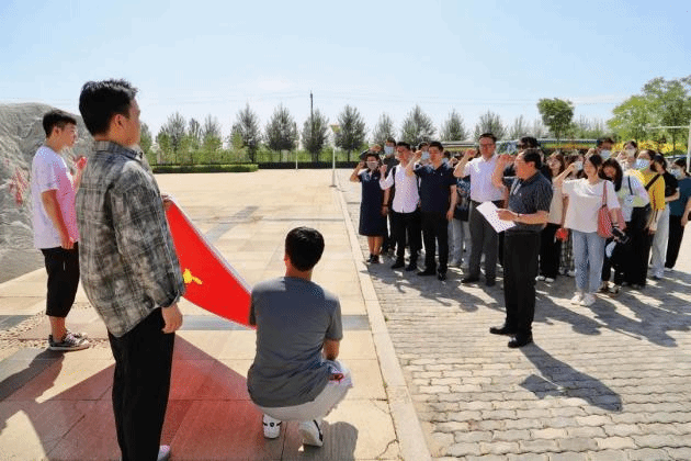 在宁夏工委旧址,周强以情景式教学方式为全体党员讲授了党史学习教育微党课。随后在周强的带领下,全体师生党员面对党旗,重温入党誓词,向伟大的党表达了践行初心使命的信心与决心。