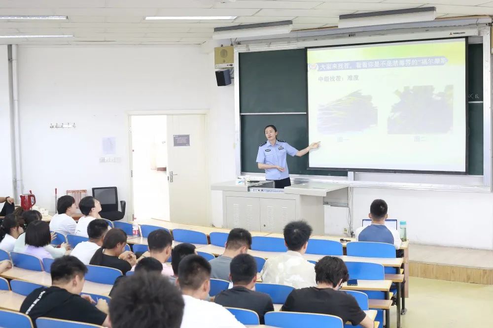 刘莉从我国禁毒工作的现状、毒品的种类、毒品的危害、预防毒品侵害的方法四个方面生动形象地为同学们进行了讲述,并着重介绍了近几年社会上流行的新型毒品,警示同学们要学会用“火眼金睛”甄别毒品并保护自己。刘莉结合工作经历和戒毒所的实际案例,为同学们阐明了毒品对人们身心、家庭、社会带来的巨大危害,教育同学们要远离毒品、珍爱生命。