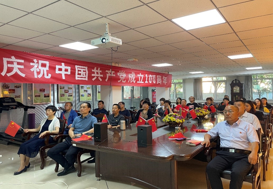 继续教育学院全体职工在学院一楼会议室集中收看庆祝中国共产党成立100周年大会直播
