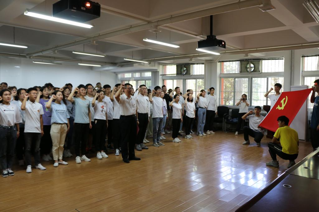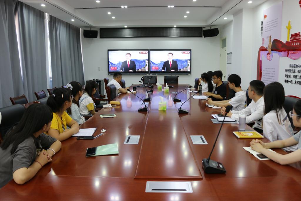 观看庆祝中国共产党成立100周年大会结束后,在学院党委书记高继明的带领下,全院57名新发展师生党员重温入党誓词。紧接着高继明领学了党中央对全体中国共产党员的号召:“牢记初心使命,坚定理想信念,践行党的宗旨,永远保持同人民群众的血肉联系,始终同人民想在一起、干在一起,风雨同舟、同甘共苦,继续为实现人民对美好生活的向往不懈努力,努力为党和人民争取更大光荣!”。