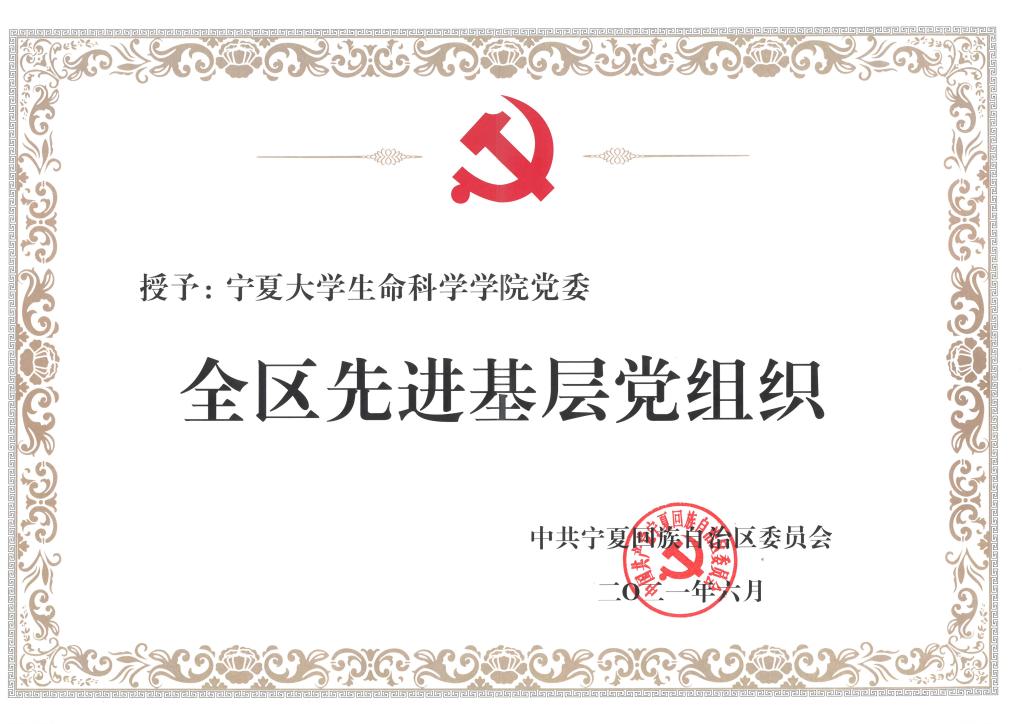 【澳门十大信誉网赌大全新闻中心讯 生命科学学院】6月28日,自治区召开“两优一先”表彰大会,生命科学学院党委荣获“全区先进基层党组织”荣誉称号。