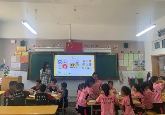 根据计划与安排,活动第一项,我院2019级会计班刘珂希带领当地儿童学习英语。首先,通过几个问题了解了当地儿童对英语知识的掌握情况。学生们踊跃积极,表现出了对知识、学习的强烈渴望。接下来,通过领读单词、讲解单词和句型的方式,让学生们对课本知识有一个简单的回顾。在交流的过程中,马兰花小队了解了他们的学习状况,倾听了他们的学习、生活问题,并针对性地予以了回答。