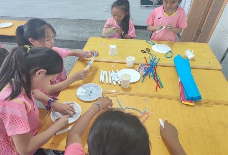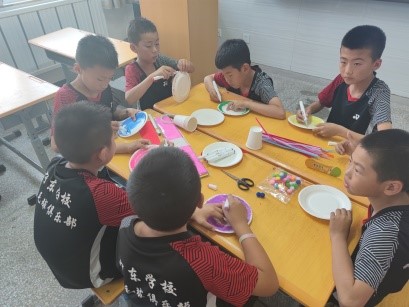 第二天,继续进行活动第三项,我院2019级会计班韩佳杏带领当地儿童进行了手工艺的制作。学生们在手工课上充分发挥想象力和创造力,利用小队带来的马克笔、彩色卡纸、纸杯纸盘等物品进行了大胆的组装和剪接,形成了一个又一个充满童心童趣的精手工美作品。小队成员们不时的指点和帮助以及儿童们的欢声笑语使得课堂氛围欢乐和谐。