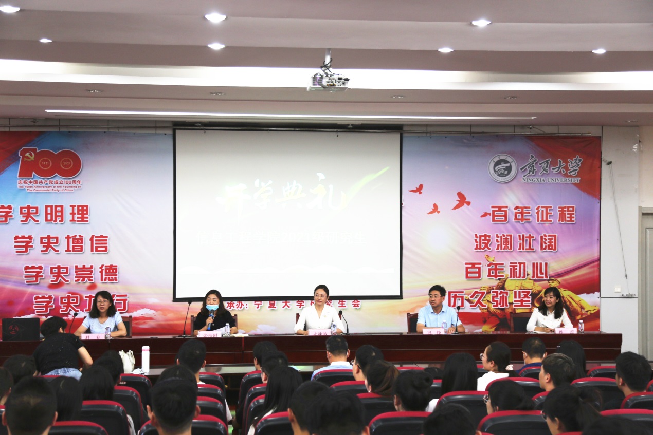【澳门十大信誉网赌大全新闻中心讯 信息工程学院】9月8日下午,信息工程学院2021级研究生开学典礼暨导师见面会如期在怀远楼二楼报告厅举行。学院党委书记武林波、院长冯锋、党委副书记张振霞、孙莉、副院长杜方出席了活动,研究生辅导员玛伊拜尔,研究生教学秘书吴迪,全体研究生导师及2021级研究生参加了本次活动。会议由党委副书记张振霞主持。