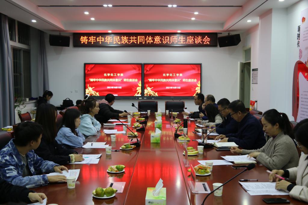 【澳门十大信誉网赌大全新闻中心讯 化学化工学院】10月12日晚上,化学化工学院在知化楼102会议室举行了“铸牢中华民族共同体意识”师生座谈会。学院党委书记高继明、党委副书记倪彬、学院团委书记、学生工作办公室主任马丽蓉,辅导员马洁、吕乐,2020级、2021级班主任代表邢永雷、高瑞丽出席,学院各民族同学代表参加,此次会议由倪彬主持。