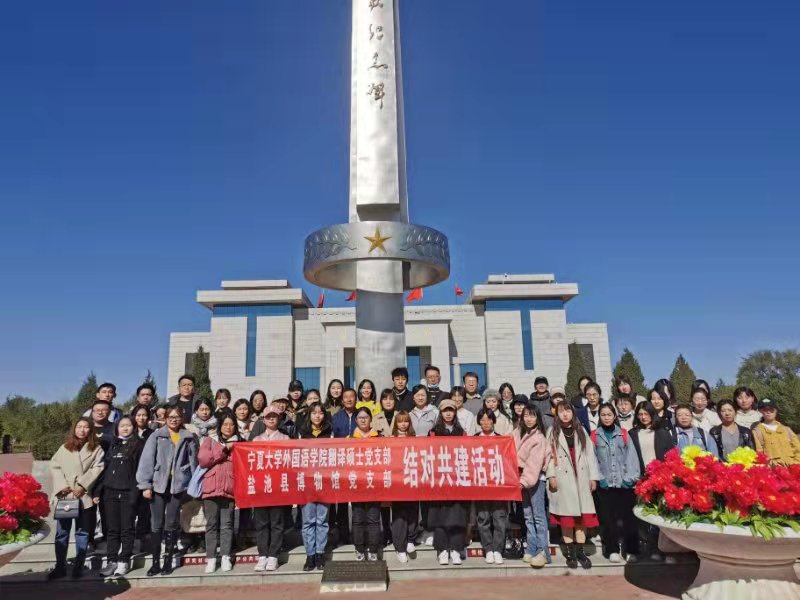 【澳门十大信誉网赌大全新闻中心讯 外国语学院】为进一步加强党史学习教育,深入推进“我为群众办实事”实践活动走向深入。10月11日,外国语学院党委副书记余洁、副院长朱海燕及翻译硕士党支部书记、学生党员赴盐池革命纪念馆,与盐池博物馆党支部开展结对共建活动。