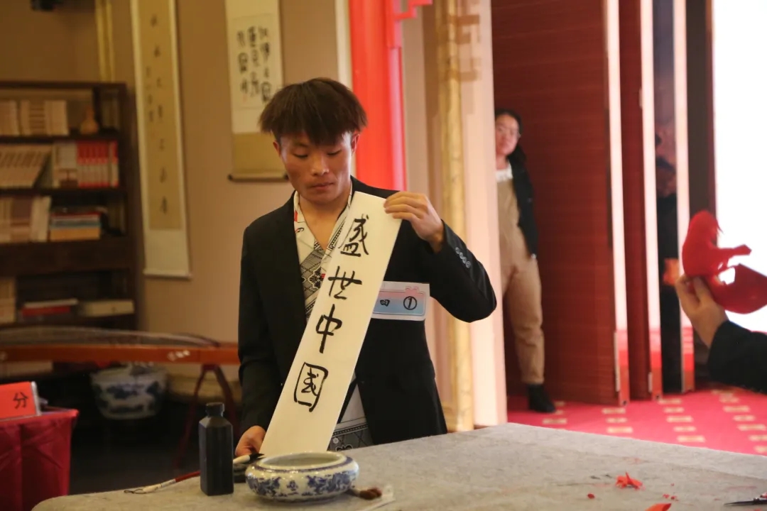 团体赛也分三个环节:知识必答、趣味汉语和传统文化展示。选手们三人一队,密切配合,协作答题。在传统文化展示环节,选手们借助陈列物品完成了剪纸、书法项目。每一组的作品都十分用心,寓意深长。银川市新闻传媒集团出镜记者、播音员方巍老师对团体赛进行了点评。方巍老师对选手们的整体表现进行了表扬,并为在场的留学生传授了读好汉字发音以及绕口令的小技巧。方巍老师希望同学们多练习生僻字的发音,未来更好地掌握汉语发音,在书法方面,不仅要考虑字体的美观,更要注重整体的布局。