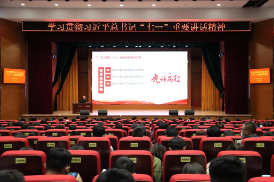 “学习贯彻习近平总书记‘七一’重要讲话精神”专题讲座中,刘瑛同志以7月1日习近平总书记在庆祝中国共产党成立100周年大会上发表的重要讲话切入主题,让我们充分认识到“七一”重要讲话的重大意义,深入领会“七一”重要讲话的重点内容,强调了坚持真理、坚守理想,践行初心、担当使命,不怕牺牲、英勇斗争,对党忠诚、不负人民的伟大建党精神。最后,刘瑛同志通过分析“七一”重要讲话精神的重大意义,完美地总结了凝聚百年奋斗经验的“九个必须”,希望同学们学党史,悟思想,办实事,开新局。