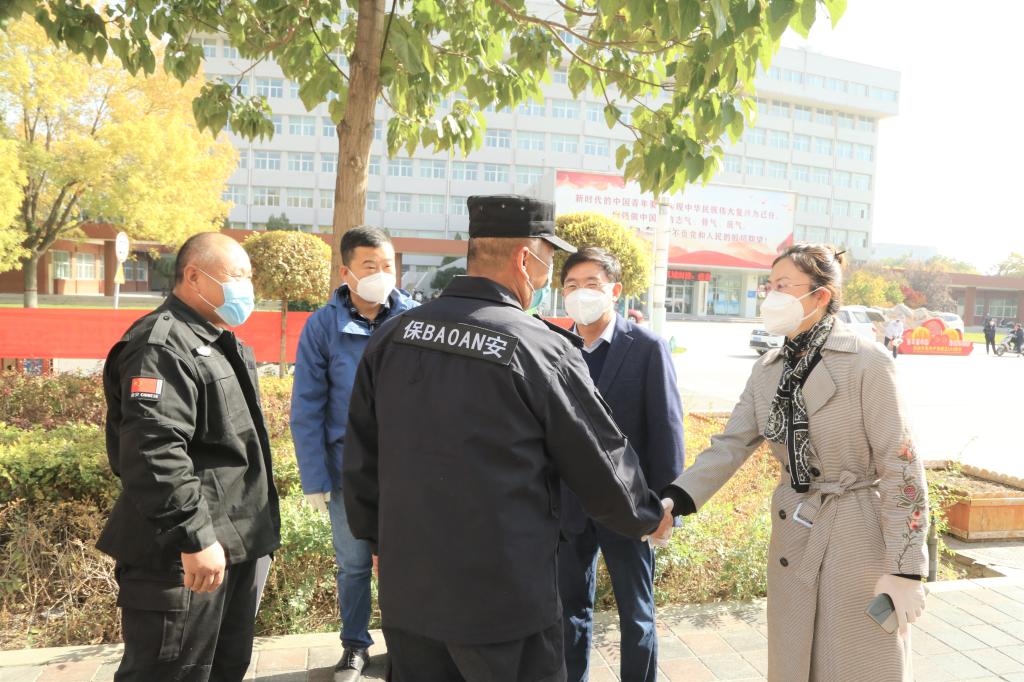 最后,一行人还对怀远校区安保人员进行了问候,并送出慰问品,感谢他们在疫情防控期间对学校安保工作的付出。