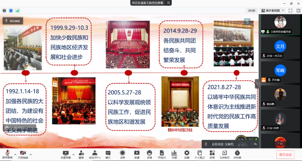 王换芳从“中华民族概念的历史演变;铸牢中华民族共同体意识是实现中华民族伟大复兴的精神力量;高度重视民族工作是贯穿中国共产党百年历史的一条红线;坚定马克思主义‘五观’,增强铸牢中华民族共同体意识的政治自觉”四个方面系统阐述了以习近平同志为核心的党中央关于民族工作的重要论述,深入分析了建立在马克思主义“五观”基础上的民族共同体意识的重要性。