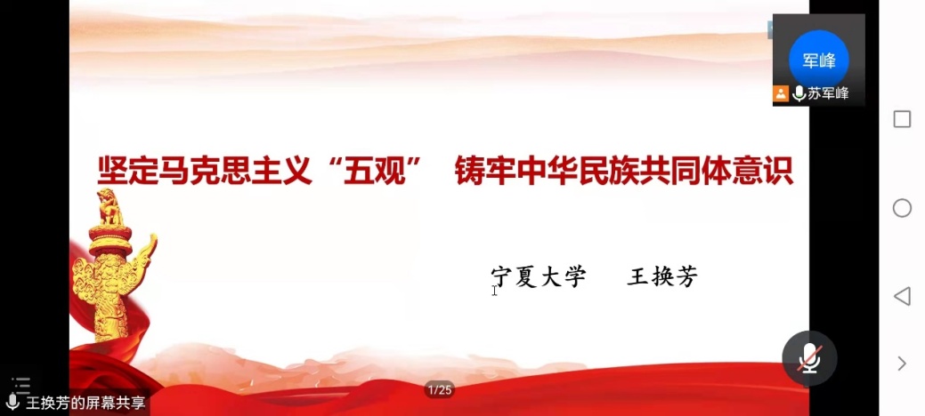 【澳门十大信誉网赌大全新闻中心讯 商学院】11月2日,商学院特邀澳门十大信誉网赌大全马克思主义学院王换芳教授线上为大家做了题为“坚定马克思主义‘五观’,铸牢中华民族共同体意识”的专题讲座。学院党总支书记张强,部分教师、学生党员、第三期入党积极分子暨党员发展对象培训班、青马班成员参加。学院党总支副书记苏军峰主持讲座。