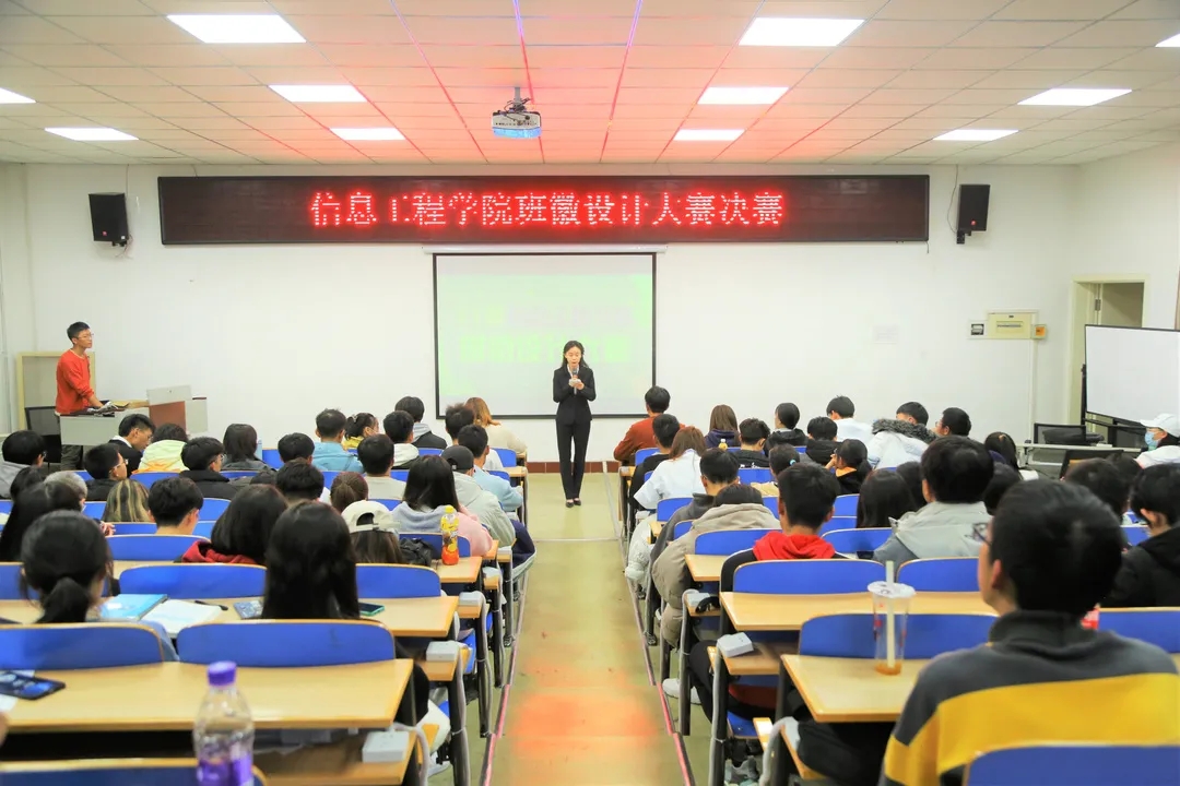 【澳门十大信誉网赌大全新闻中心讯 信息工程学院】为加强班级精神文化建设,提高大学生实践创新能力。12月8日下午,我院易班中心于学院楼321举办班徽设计大赛决赛。辅导员玛伊拜尔、团委学生会成员顾天瑞、陈丹妮、周锦涛、闫辉担任本次比赛评委。21级100余名同学参加。