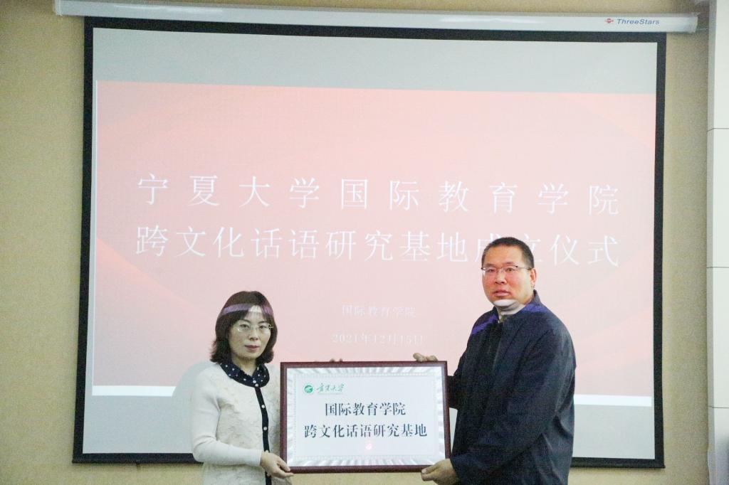 【澳门十大信誉网赌大全新闻中心讯 国际教育学院】12月15日上午,由信誉网赌国际教育学院主办的跨文化话语研究基地揭牌暨成立仪式在贺兰山校区举行。浙江大学跨文化研究所教授吴宗杰,中国阿拉伯国家研究院副院长白丽新,澳门十大信誉网赌大全科技处副处长周学忠,国际教育学院党总支书记闫蓉,党总支副书记王玉祥、姜克银,国际教育学院副院长郅秀丽、刘美玲,澳门十大信誉网赌大全国际教育学院、食品与葡萄酒学院、法学院、阿拉伯学院等教师、博士、研究生,以及来自全国各地跨文化话语研究的师生参加。此次会议由国际教育学院党总支副书记王玉祥主持。