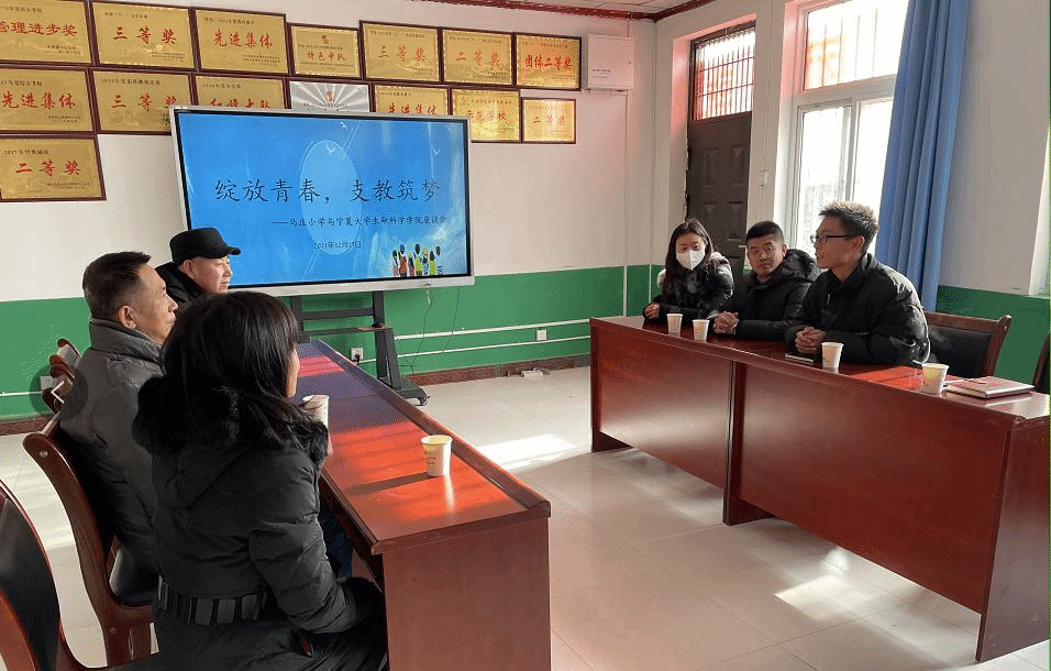 【澳门十大信誉网赌大全新闻中心讯 生命科学学院】近年来,我院响应团中央“中国青年志愿者扶贫接力计划研究生支教团项目”,积极动员学生参与,目前已有6名学生入选研究生支教团。现有三名学生在固原市原州区头营镇马庄小学支教。为表达对支教工作的支持和对支教学生的关爱,12月17日,学院院长苏建宇和学办主任杨亚珺赴宁夏固原市头营镇马庄小学看望慰问我院研究生支教团成员。