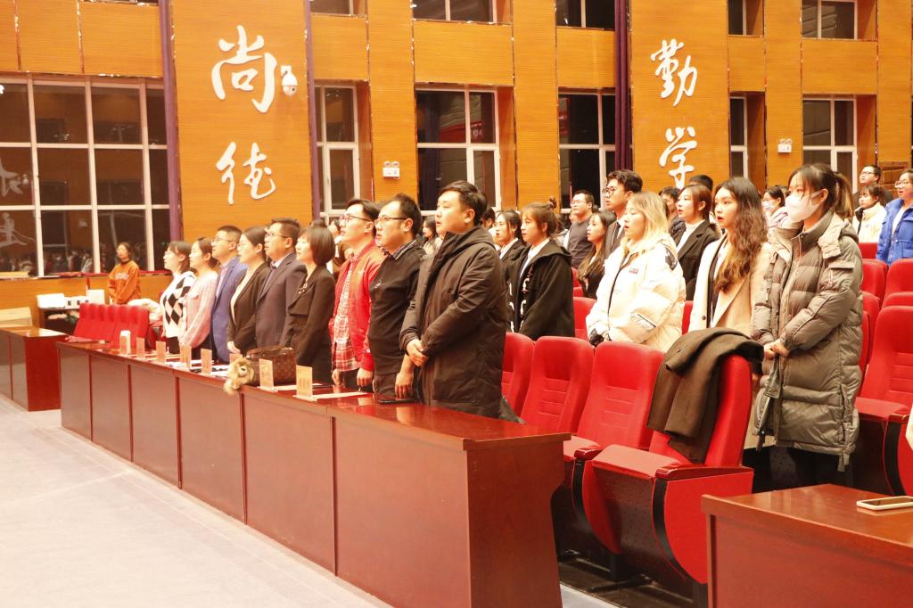 【澳门十大信誉网赌大全新闻中心讯 文化旅游学院】为表彰先进,发挥先锋模范带头作用,营造浓厚的育人氛围,12月23日晚,文化旅游学院在应理报告厅隆重举行2021年度总结表彰大会。学院党总支书记马骏、院长王磊、学院党总支副书记安瑞平、学院副院长戴晓琳与学院学生共同参加了此次大会。会议由学院团委书记贺剑主持。表彰大会在雄壮的国歌声中拉开帷幕。