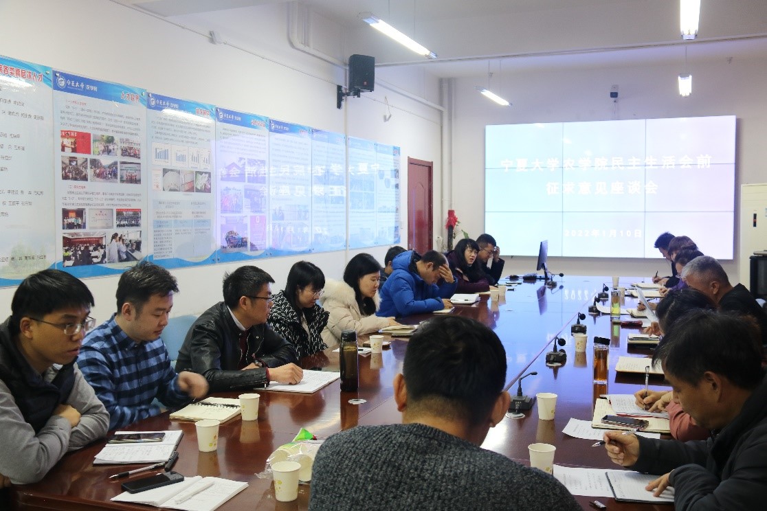 【澳门十大信誉网赌大全新闻中心讯 农学院】为开好党史学习教育专题民主生活会,科学谋划学院各项工作,着力推进学院高质量发展,1月10日至11日,农学院党委先后召开青年博士、统战人士、系主任与教研室主任、教师党支部书记与支部委员、班主任与辅导员等五个层面的座谈会,学院全体班子成员参加会议,充分倾听师生代表的意见建议。