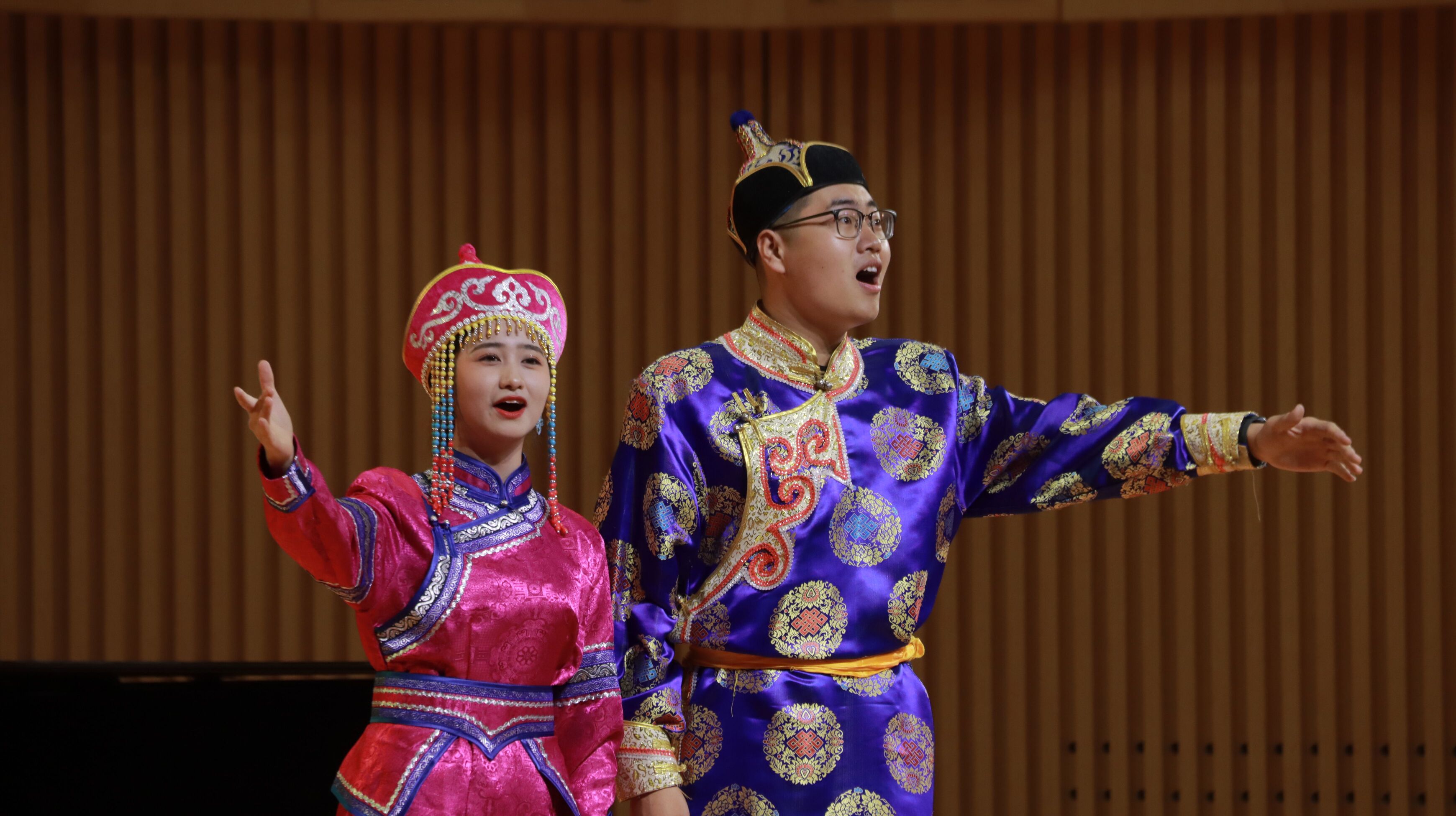 音乐会现场,学生们身着民族特色服饰闪亮登场。男女声对唱《敖包相会》《想亲亲》《龙船调》,女声重唱《灯碗碗开花在窗台》《年轻的朋友》《知道不知道》《渔家姑娘在海边》,男声重唱《烽火狼牙山》《鸿雁》《忠实的心儿想念你》《阿拉木汗》《尕老汉》,民族歌剧《你是我我是你》《花儿为什么这样红》《马铃响来玉鸟唱》《天边有颗闪亮的星》等来自蒙古族、土家族、达斡尔族、维吾尔族等少数民族的歌曲和山西、江浙等地民歌,表达了对美好生活的向往,爱国主义精神的歌颂以及中华民族一家亲、同心共筑中国梦的共同心愿,引起了全场观众的情感共鸣。大合唱《爱我中华》更是将现场气氛推向了高潮,令在场师生再次深刻感受到了中华民族大家庭血脉相连的深厚情感,赢得热烈掌声。