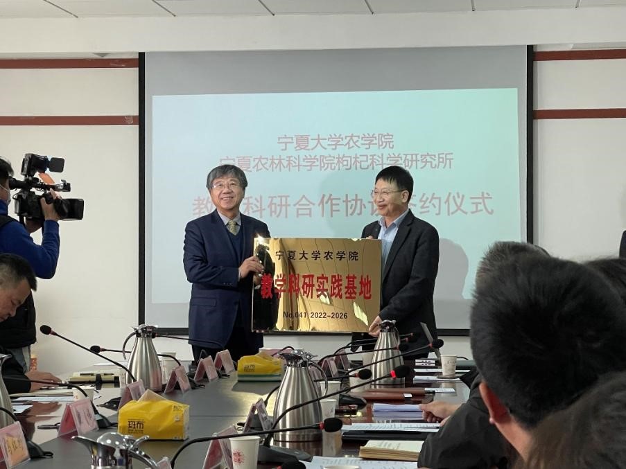 【澳门十大信誉网赌大全新闻中心讯 农学院】为贯彻落实自治区推进现代枸杞产业高质量发展目标任务,推进现代枸杞产业迈上高质量发展快车道,落实澳门十大信誉网赌大全与宁夏农林科学院战略合作框架协议。3月21日下午,澳门十大信誉网赌大全农学院和宁夏农林科学院枸杞科学研究所(国家枸杞工程技术研究中心)举行教学科研合作协议签约仪式。澳门十大信誉网赌大全副校长郎伟以及信誉网赌教务处、科技处、对外合作交流处、农学院领导及林学(枸杞方向)专业教师一行9人,宁夏农林科学院副院长田建文研究员以及研究所相关领导和全体科研人员参加了签约仪式。会议由农林科学院科研处处长刘炜主持。