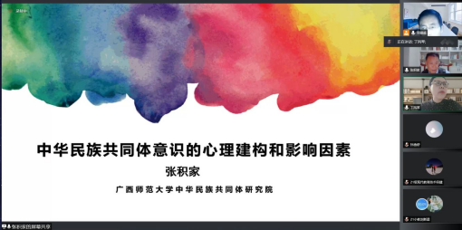 【澳门十大信誉网赌大全新闻中心讯 教育学院】4月18日晚上,中国人民大学心理学教授、博士生导师张积家,应邀通过腾讯会议为教育学院师生作题为“论中华民族共同体认同的心理建构与影响因素”的学术讲座。讲座由澳门十大信誉网赌大全教育学院副院长、博士生导师丁凤琴教授主持,学院博士生、硕士生、部分教师代表260余人参加讲座。