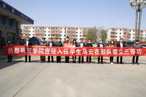 【澳门十大信誉网赌大全新闻中心讯 新华学院】4月23日,西夏区武装部、退役军人事务局、朔方路街道相关工作人员将新华学院应征入伍学生马云在部队荣立三等功的喜报送至学院。