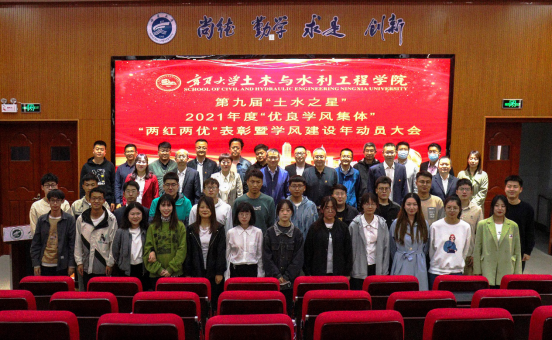 【澳门十大信誉网赌大全新闻中心讯 土木与水利工程学院】为表彰先进、树立典范,更好地推动院风学风建设,土木与水利工程学院于5月12日召开第九届“土水之星”、2021年度“优良学风集体”“两红两优”表彰暨2022学风建设年动员大会。校党委常委、副校长王忠静出席会议,全体院领导,各系、办主任,教工党支部书记及受表彰学生参加现场会议,学院其他师生在线同步观看了表彰大会。