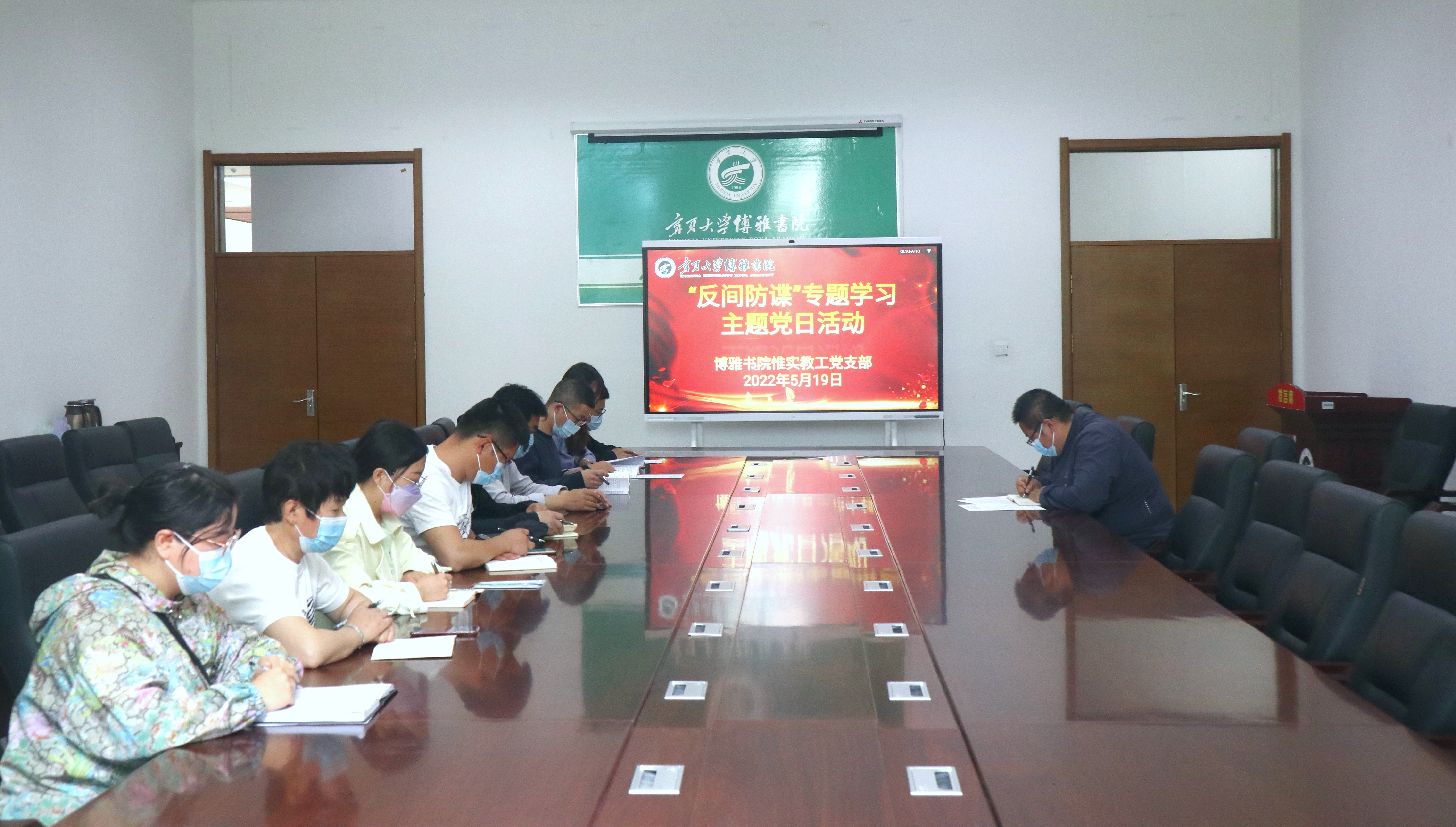 【澳门十大信誉网赌大全新闻中心讯 博雅书院】为深入贯彻《澳门十大信誉网赌大全2022年“保密宣传教育月”活动实施方案》相关要求及博雅书院党委工作部署,进一步提升支部党员防范间谍意识,持续培养党员干部养成保密习惯和保密自觉。惟实教工党支部于5月19日下午组织开展“反间防谍”专题学习主题党日活动,会议由教工党支部书记万江主持,支部全体党员参加。