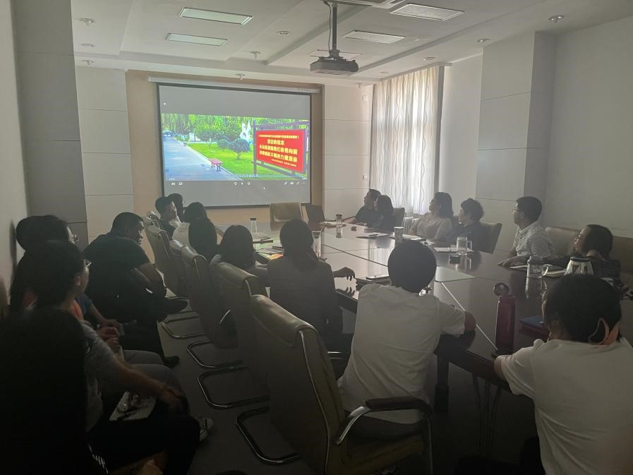 会上组织全体教职工集体观看党课影片《绿皮小火车》,影片通过挖掘“三线建设”和宁夏“最高龄”绿皮小火车的历史文化内涵,生动再现了 60 年来包兰线银汝支线上几代人的奋斗历程,展现了石嘴山市来自五湖四海的建设者付出鲜血和汗水, 把原来的戈壁滩建设成一个美丽的山水园林工业城市的动人故事。