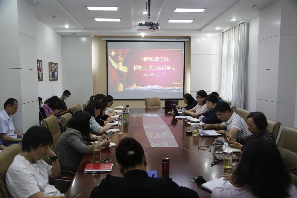 【澳门十大信誉网赌大全新闻中心讯 国际教育学院】为深入学习贯彻习近平总书记在庆祝中国共产主义青年团成立100 周年大会上的重要讲话精神,不断巩固和拓展党史学习教育成果,为党的二十大胜利召开凝心聚力营造良好氛围,5月25日下午,国际教育学院开展5月份教职工政治理论学习,学院全体领导班子及全体教职工参加会议。