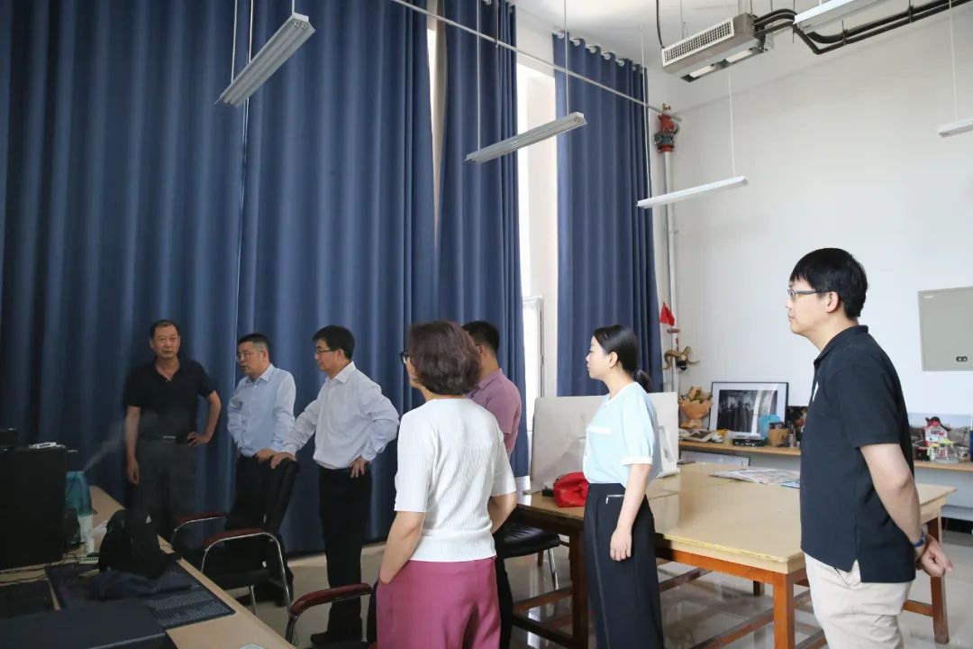 周震参观了新闻传播学院实验大楼,在摄影摄像工作室观看了邬志斌老师指导的毕业生作品,对实验实训中心、舆情中心、融媒体中心、演播厅、校园广播站、校园电视台及教师工作室的未来建设进行全面了解。