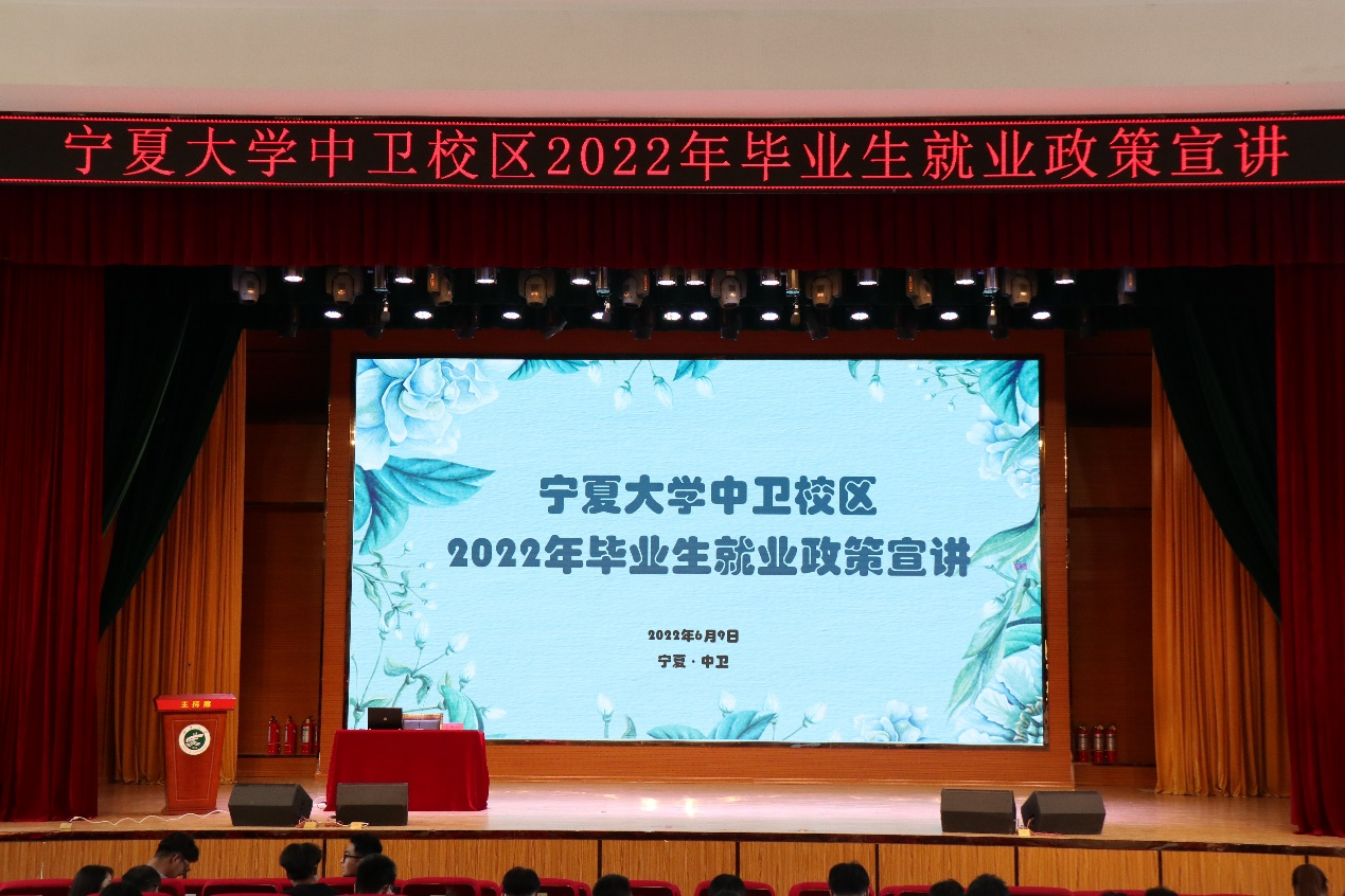 【澳门十大信誉网赌大全新闻中心讯 博雅书院】为帮助信誉网赌2022届毕业生确定就业方向,及时掌握国家就业优惠政策,加强就业引导,促进毕业生实现就业创业工作。6月9日上午,博雅书院于应理报告厅组织开展澳门十大信誉网赌大全中卫校区2022年毕业生就业政策宣讲会。自治区大中专毕业生就业指导服务中心主任王思旭、银川市委人才工作局副局长徐少辉等6位调研组成员、中卫校区相关领导出席本次大会。我院部分毕业生参加此次大会。