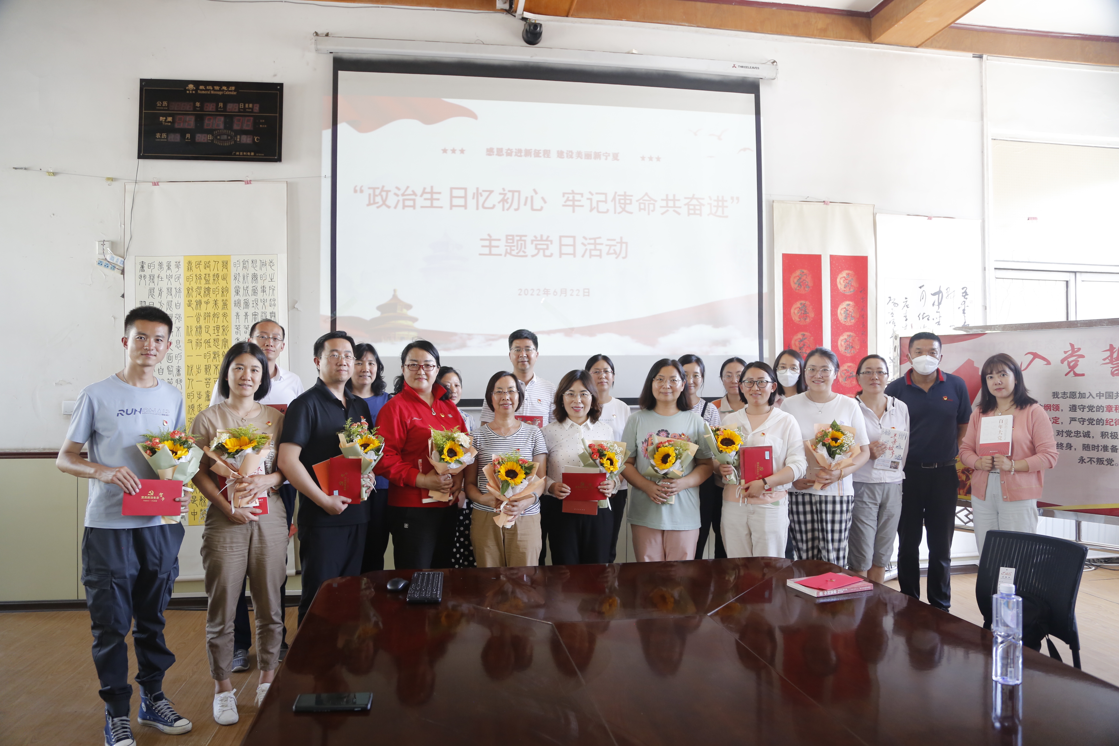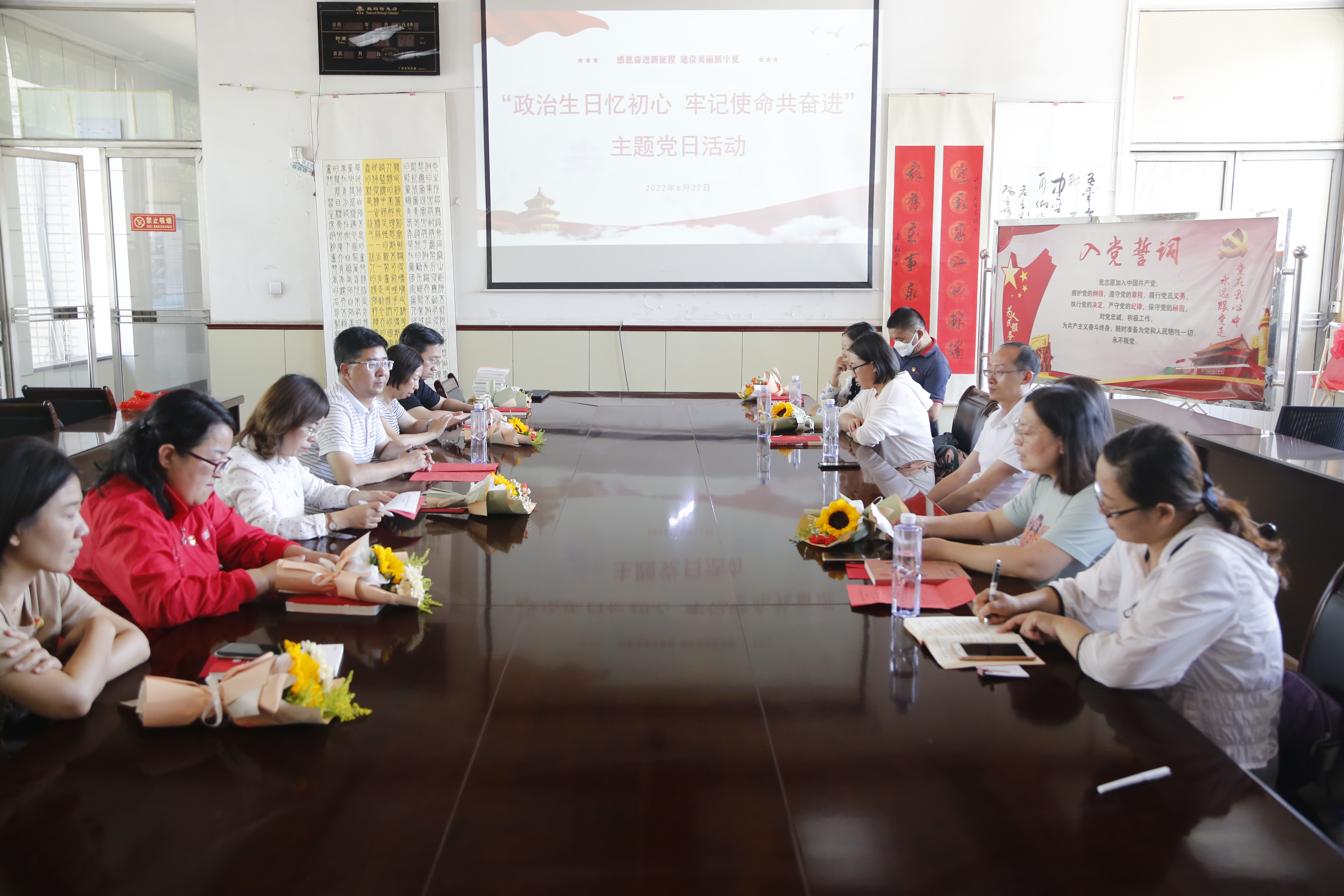 活动中,全体党员面对党旗庄严宣誓、重温入党誓词,党总支为过“政治生日”的党员赠送了红色书籍和生日贺卡。党员教师韩晓玲、乔星、陶雪梅结合自己的入党故事、成长经历、思想变化、工作表现和价值追求等分享了政治生日感悟。在场党员齐唱《歌唱祖国》,进一步激发党员教师爱党爱国的热情。