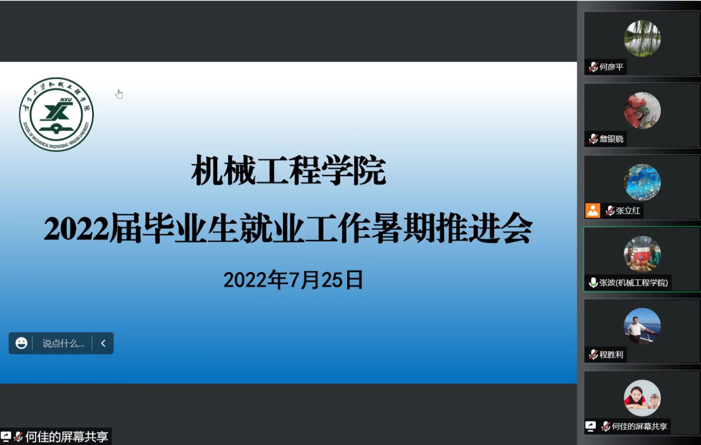 【澳门十大信誉网赌大全新闻中心讯 机械工程学院】为深入学习习近平总书记对做好高校毕业生就业工作作出的重要指示批示精神,全面贯彻国家、自治区、学校关于就业工作推进会议精神和工作要求,7月25日,机械工程学院线上召开全院教职工大会,部署安排就业帮扶措施,扎实推进毕业生就业工作,确保在8月31日前完成学院2022届毕业生毕业去向落实率85%以上的目标任务,院长张波主持会议。