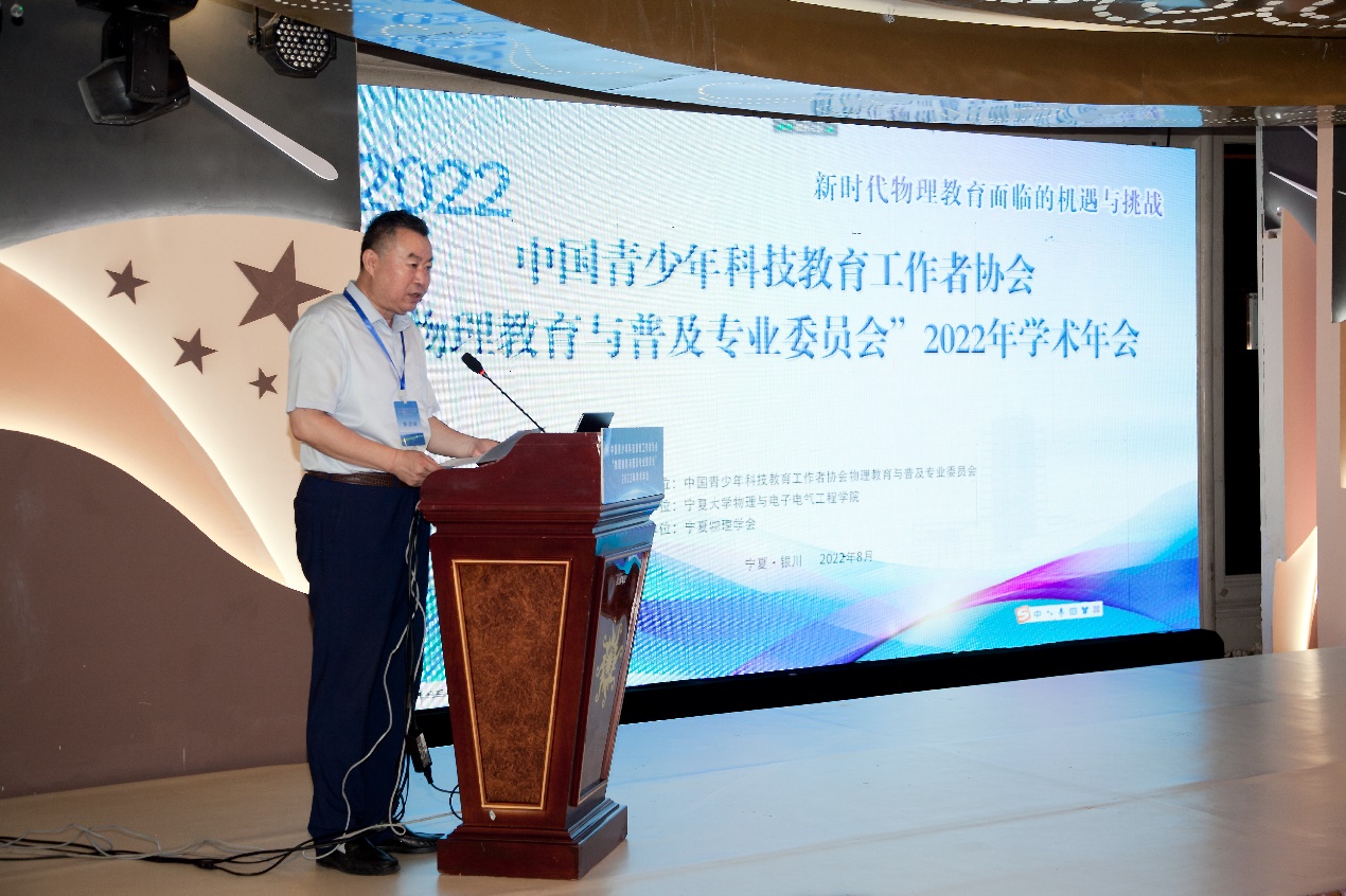 【澳门十大信誉网赌大全新闻中心讯 物理与电子电气工程学院】8月19日-22日,中国青少年科技教育工作者协会物理教育与普及专业委员会2022年学术年会在银川召开。会议由青少年科技教育工作者协会物理教育与普及专业委员会主办,澳门十大信誉网赌大全承办,宁夏物理学会协办。会议邀请国家中学物理课程标准研制组及修订组成员和教育部国培计划专家库成员以及相关专业教学老师等60余名代表参会,三千余名相关师生线上参加会议,开幕式由澳门十大信誉网赌大全物理与电子电气工程学院院长王旭明教授主持。