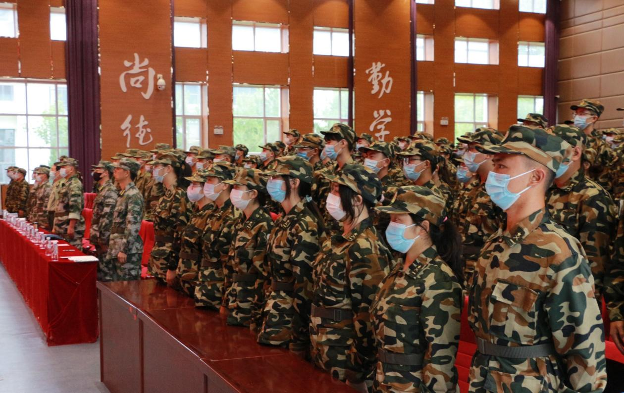 大会在雄壮的《中国人民解放军军歌》中拉开帷幕。军训团团长方非宣读营职干部名单,承训部队教官卢家财、参训教师代表徐向龙和军训学生代表尹博文分别进行发言。