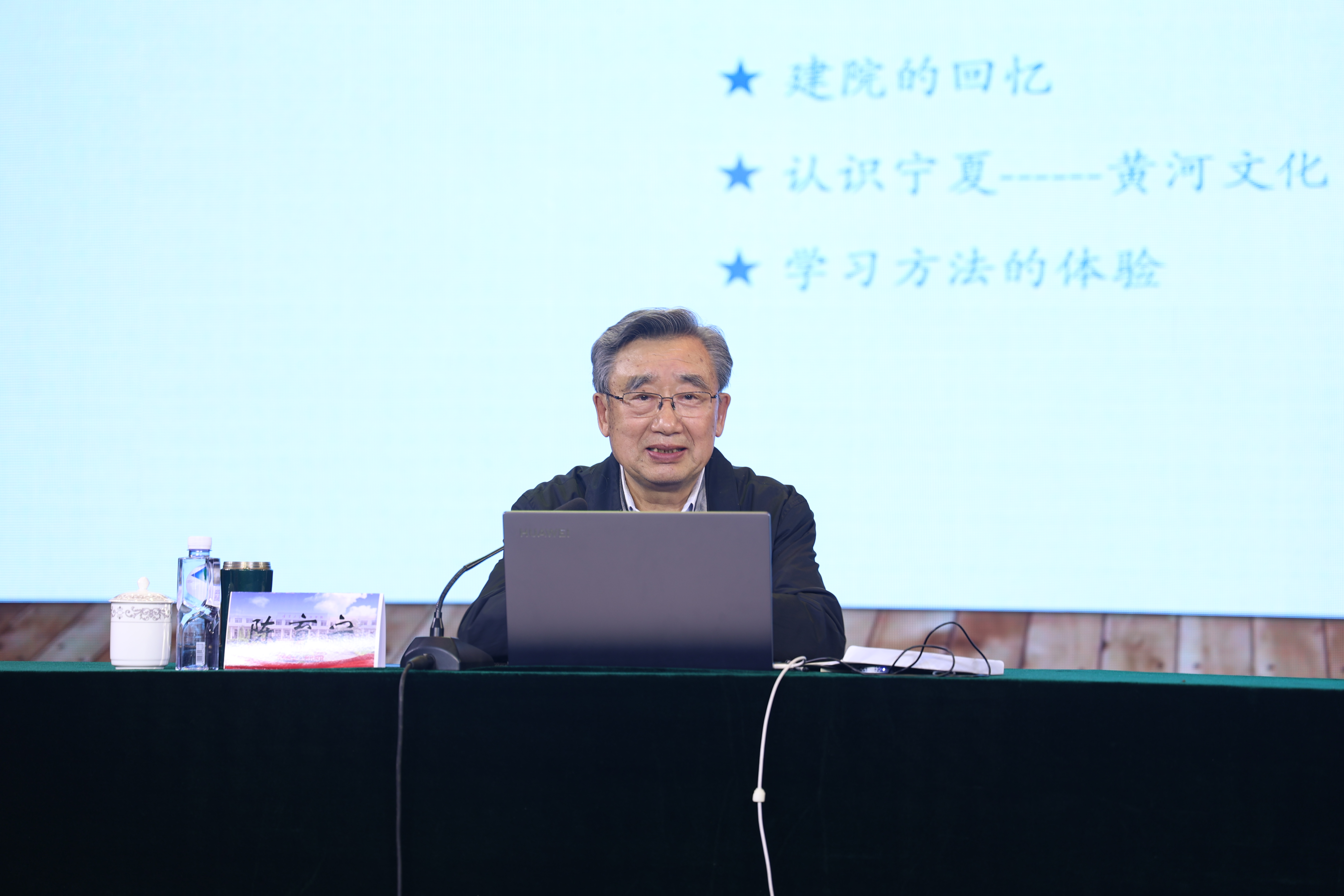 陈育宁教授对学院20年来的发展和成绩给予了充分的肯定。他表示,20年前有幸参与创建新华学院,一年内从无到有的历程让他至今记忆犹新。他指出,新华学院的发展离不开宁夏的发展,宁夏的发展与黄河文化有密切关系,要想了解宁夏,必须了解宁夏的黄河文化,要主动在“黄河流域生态保护和高质量发展先行区”建设中作出我们的贡献。最后,他将自己多年来的宝贵学习经验和方法分享给在场的师生,并提出殷切希望。