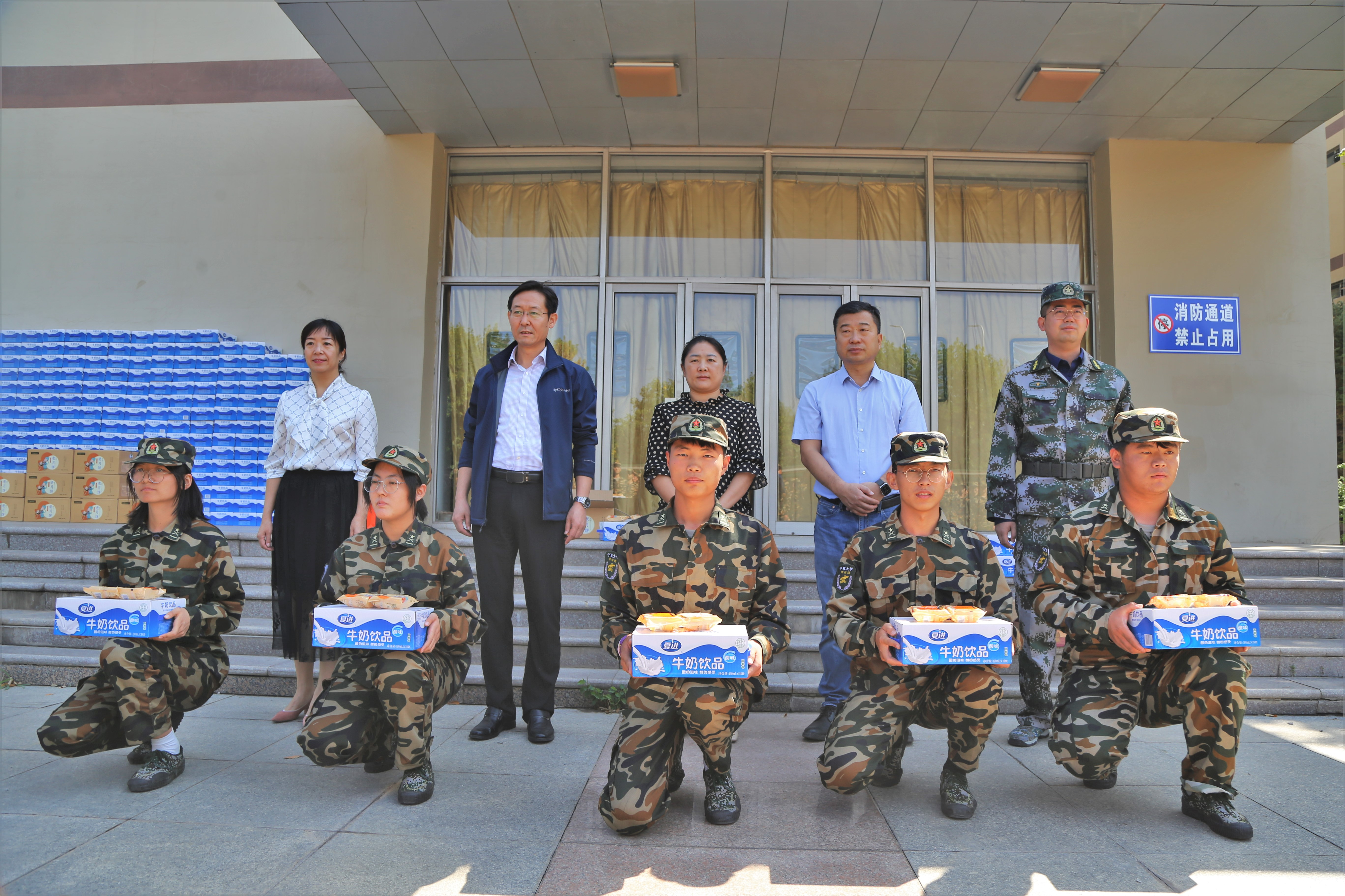 慰问活动现场学院领导向参训教官和新生发放了慰问品。