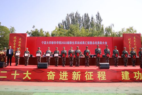 【澳门十大信誉网赌大全新闻中心讯 新华学院】9月13日上午,2022级学生军训成果汇报暨总结表彰大会在新华学院中心区操场举行。负责参训部队政治指导员李正龙,学院党委书记、政府督导员杨文刚,党委副书记、纪委书记刘伯川,党委副书记刘军红,副院长李胜宾、宗力、赵永生及承担2022级学生军训工作的全体教官、教师代表及全体参训学生参加大会。大会由教务处处长、军训团政委何振华主持。
