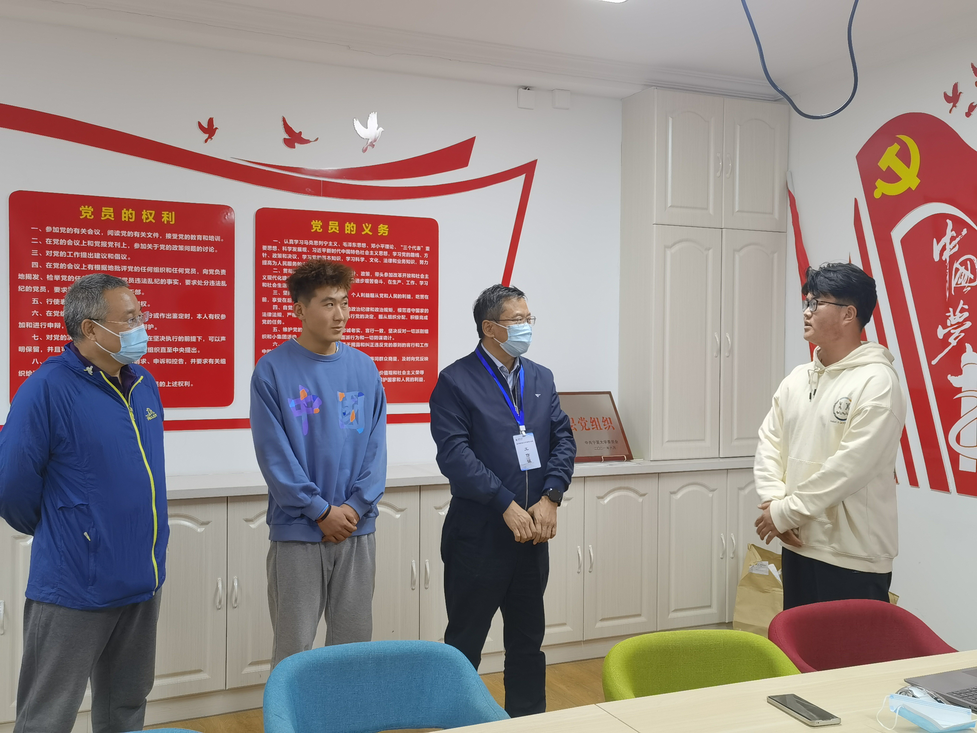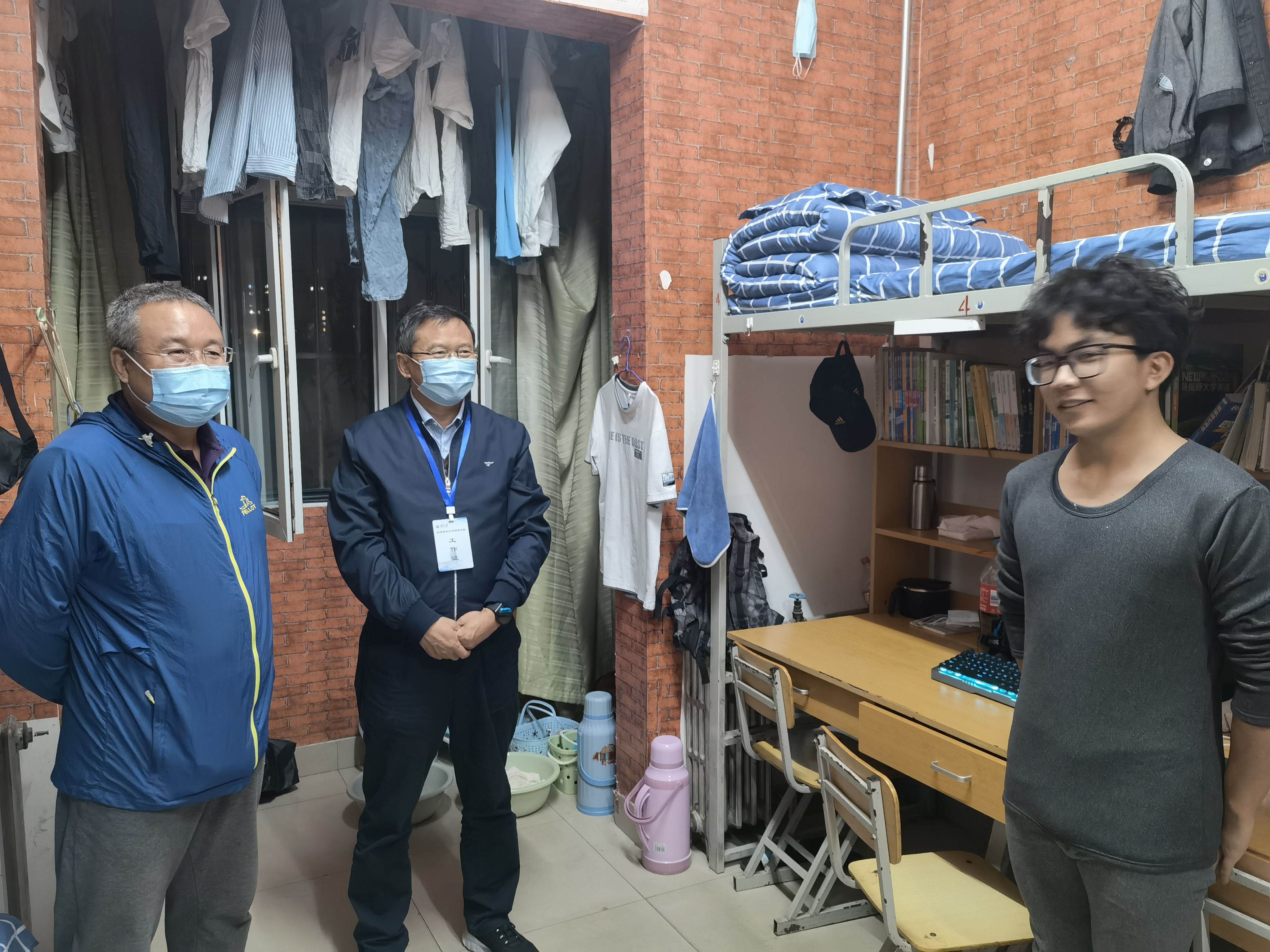 在走访宿舍时,王忠静亲切慰问了学生在平时的学习和生活中有无困难和需要学校协调解决的事宜,鼓励同学们要走下网络、走出寝室、走向操场,积极参加各类有益身心的集体活动。并关心疫情期间学生的思想状态,交谈中鼓励同学们积极向党组织靠拢,交流现场氛围融洽。