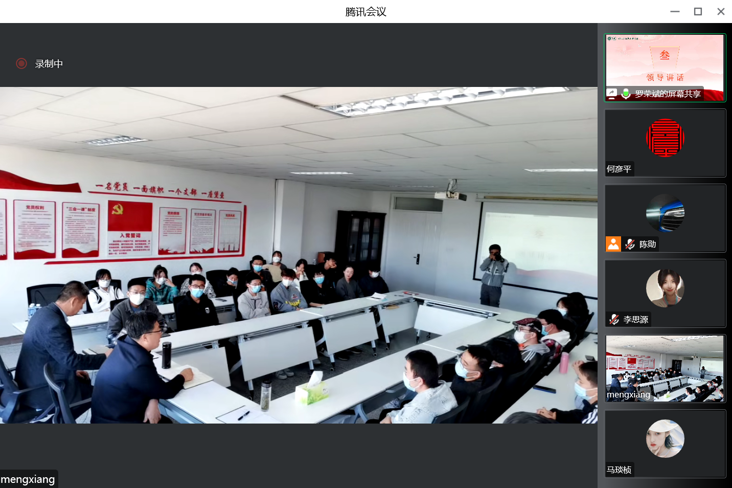 在同学们的分享过程中,参加会议的领导老师与同学们进行互动交流。程胜利讲到,同学们即将面临准备考研、考公和就业择业的问题,希望同学们合理安排目前的学业和生活,找到自身优势,修炼本领,提高个人的核心竞争力,创造自己的社会价值。并鼓励同学们正确分析研判当前就业形势,熟悉就业相关政策,抓紧一切可利用的时间规划未来的职业生涯,明确今后努力的方向。