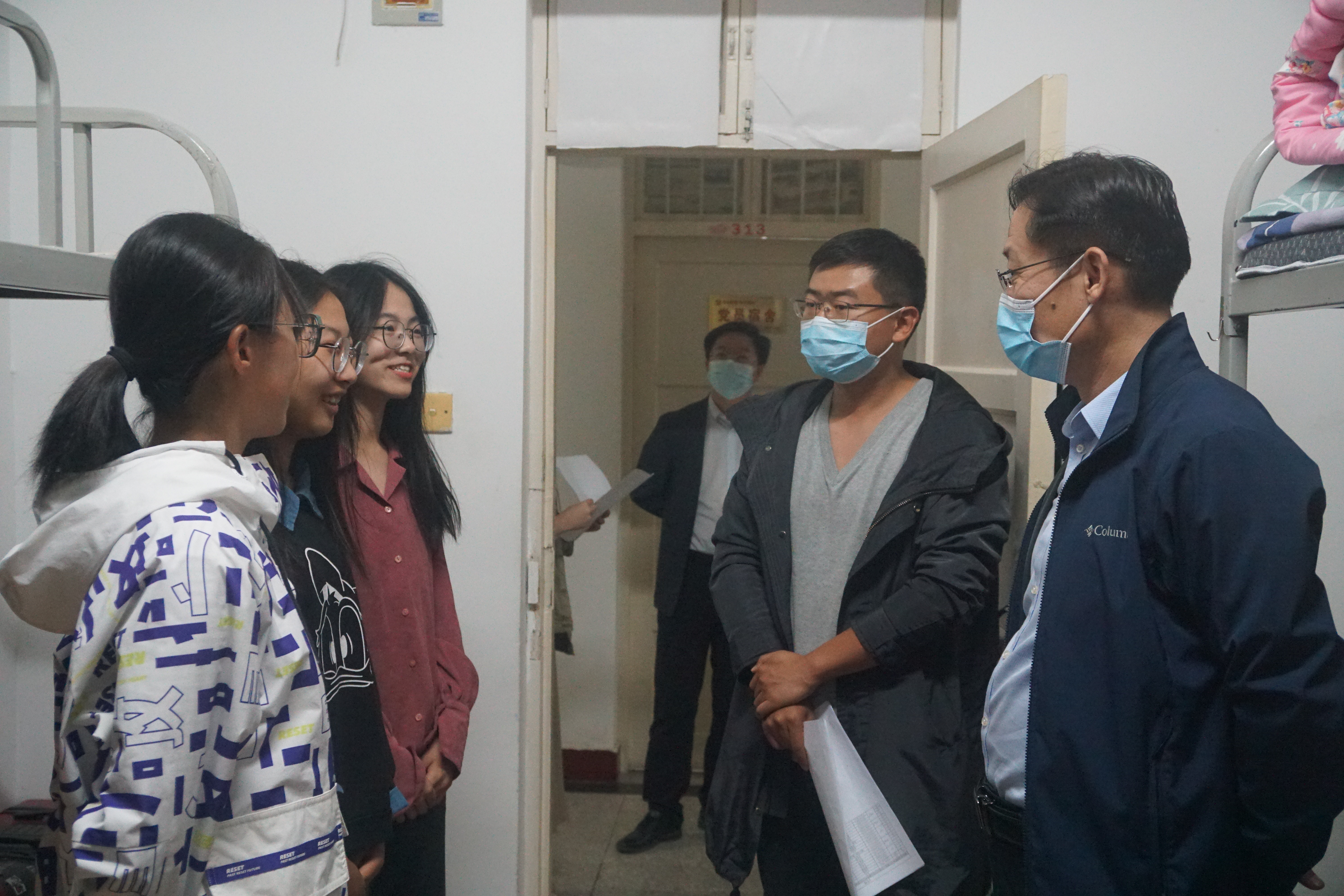 进班级入寝室,细致入微显真情。为避免学生在封校管理期间不良情绪的滋生蔓延,出现心理焦虑,学院前后开展院领导走进学生班级“七进一交友”网络文明安全主题班会、辅导员年级线上会议、班主任云查寝、主题班会,班主任线上“大思政”课、公寓楼五级管理体系线上会议、学生干部线上会议等,多角度、全方位,细致做好学生思想工作。院领导、辅导员、班主任分层次、分主题展开思想教育,提升学生大局观和纪律性,提醒学生高度重视疫情防控各项工作要求,从自身情绪管理和健康检测做起,合力保障全体学生思想稳定、健康安全、学习有序。同时,学院成立以副书记张振霞、全体辅导员、学生干部为管理层面的五级公寓管理体系,分校区、分楼宇设微信群,设楼长、楼层长,充分发挥宿舍长的作用,关注每一名学生每日学习、生活和需求。