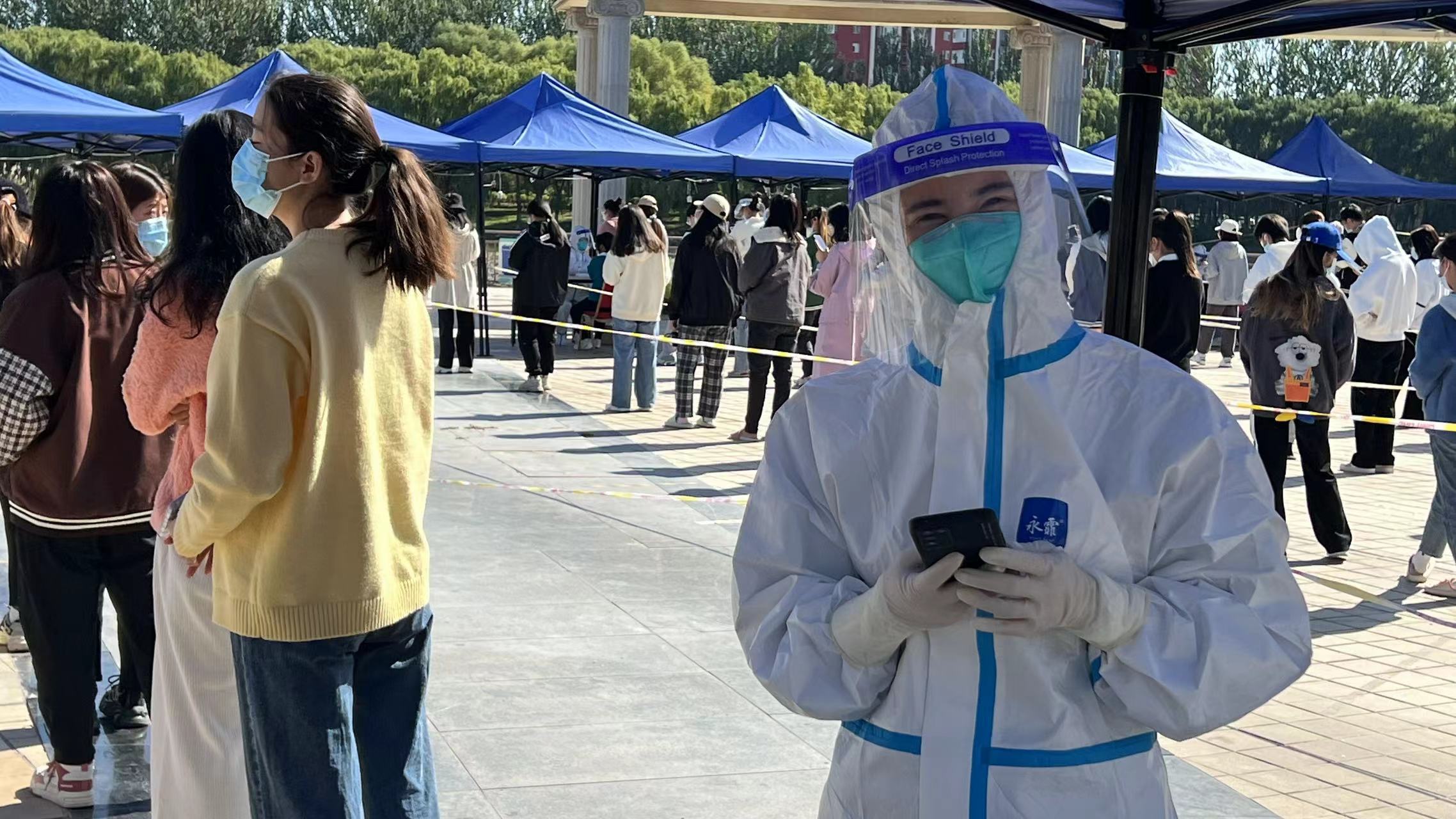 领导班子下沉一线,冲锋在前担责任。为保证学生核酸检测现场井然有序,应检尽检不漏一人,院党委书记车进、院长冯锋、党委副书记孙莉、副院长杨军、刘昊纷纷主动担当,申请入校,下沉一线,前往核酸检测现场组织学生,维持秩序,有力的保障了我院怀远校区一千余名学生核酸采样现场秩序。不定期走进学生寝室、前往教师公寓慰问外教老师,了解师生疫情期间的学习、生活,细致做好每一位师生思想工作。还承担着怀远校区的安全巡查工作,为校区安全稳定发挥积极的作用,为学院战“疫”工作筑起一道坚不可摧的防线。