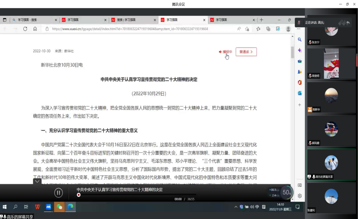 【澳门十大信誉网赌大全新闻中心讯 化学化工学院】11月9日下午,学院召开传达学习党的二十大精神大会暨全体教职工大会。会议集中学习了《中共中央关于认真学习宣传贯彻党的二十大精神的决定》。学院部分领导班子成员、系主任、工会委员和部分教工支部书记线下参会,其他教职工通过线上形式参加会议。学院党委书记高继明主持会议,