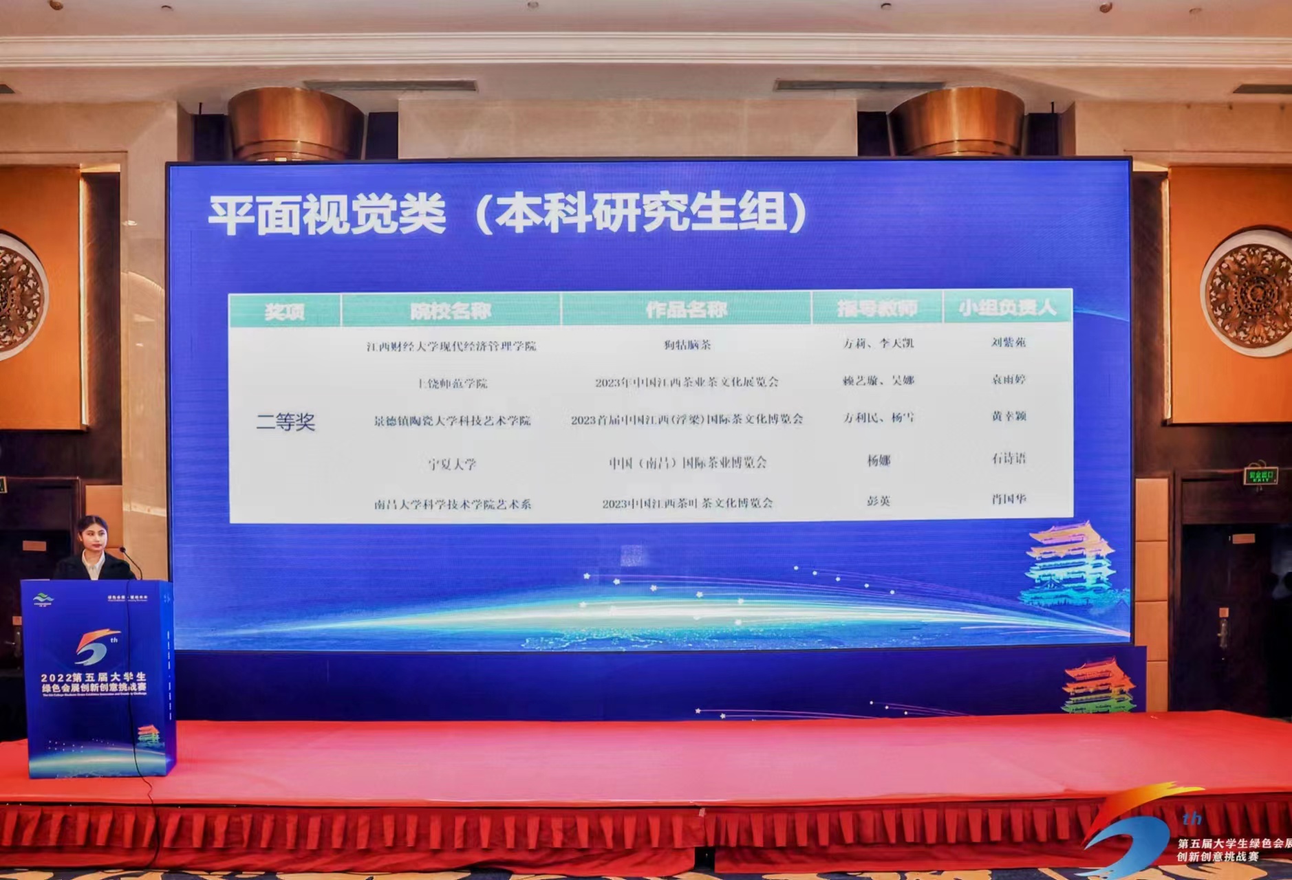 【澳门十大信誉网赌大全新闻中心讯 前沿交叉学院】近日,第五届大学生绿色会展创新创意挑战赛在江西南昌举办。大赛由江西省商务厅和江西省教育厅共同主办、中国会展经济研究会指导,设有六个赛道,全国50多所高校共计120支队伍、500多名选手参加决赛。前沿交叉学院石诗语、尚佳荣、王科乂、崔吉祥、石皓阳组成的学生团队在文化旅游研究中心杨娜老师指导下参加该项比赛,团队以初赛全国第四,总成绩全国第六,斩获平面视觉类赛道全国二等奖,也是本届西北参赛高校中唯一获奖的团队。