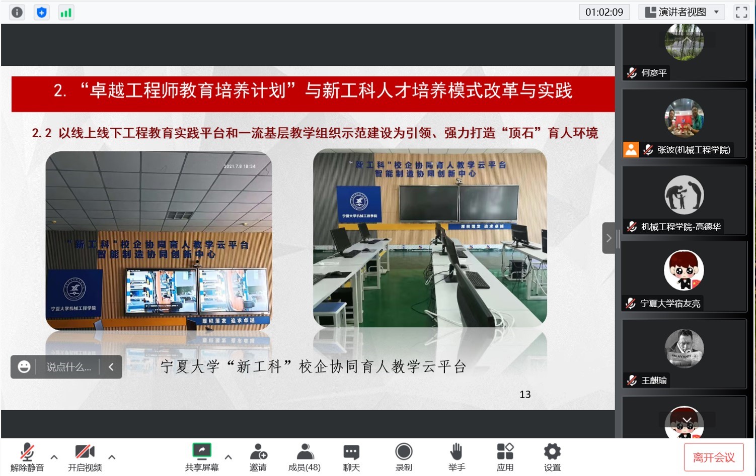 会上,学院分管本科教学副院长李宏燕详细汇报了我院机械工程卓越工程师教育培养情况。马玉山肯定了我院十多年来在卓越工程师培养方面取得的成绩,并对未来卓越工程师的培养提出意见和建议。他指出,党的二十大报告明确提出教育是国之大计、党之大计,今后的本科教学和人才培养要深入思考党的二十大报告提出的“培养什么人、怎样培养人、为谁培养人”这一教育根本问题,围绕产教融合、科教融汇展开教学,要让学生带着问题学、带着目标学,做到学以致用、能力为先,校企协同育人中要将学校和企业刚性结合,将卓越工程师的培养进一步做强做实,不断提升人才培养质量。