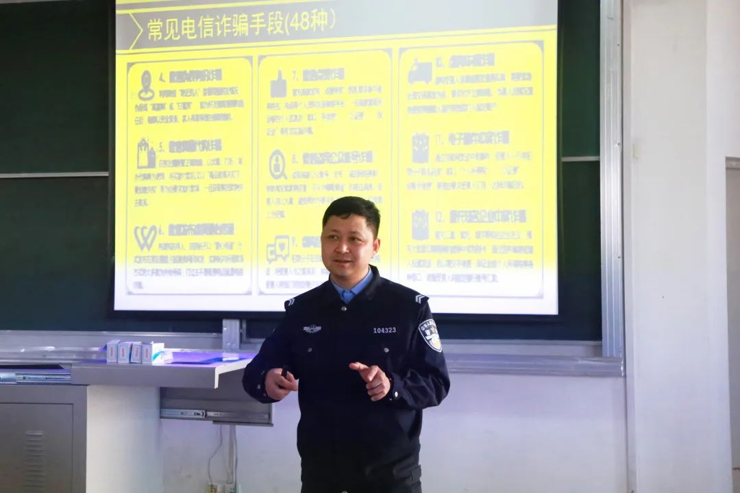 【澳门十大信誉网赌大全新闻中心讯 信息工程学院】为进一步提高广大师生的反诈骗意识,增强对诈骗犯罪的辨别能力和应对能力,全力打造平安、和谐校园环境。3月8日,朔方路派出所兰警官来到我院在怀远一教331教室开展反诈防骗主题讲座。