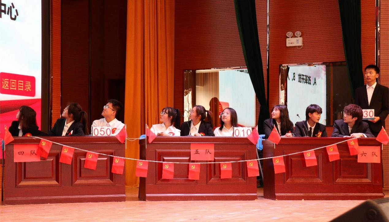 本次知识竞赛共设置了团队必答题、抢答题、选答题、风险题四个环节,内容涉及党的二十大报告重要内容。现场还设置了投票环节和互动问答环节,整个会场气氛热烈、紧张有序,面对一道又一道题目,选手们胸有成竹,对答如流,不仅检验出了选手们理论知识储备的全面性,还考验了他们的反应力。
