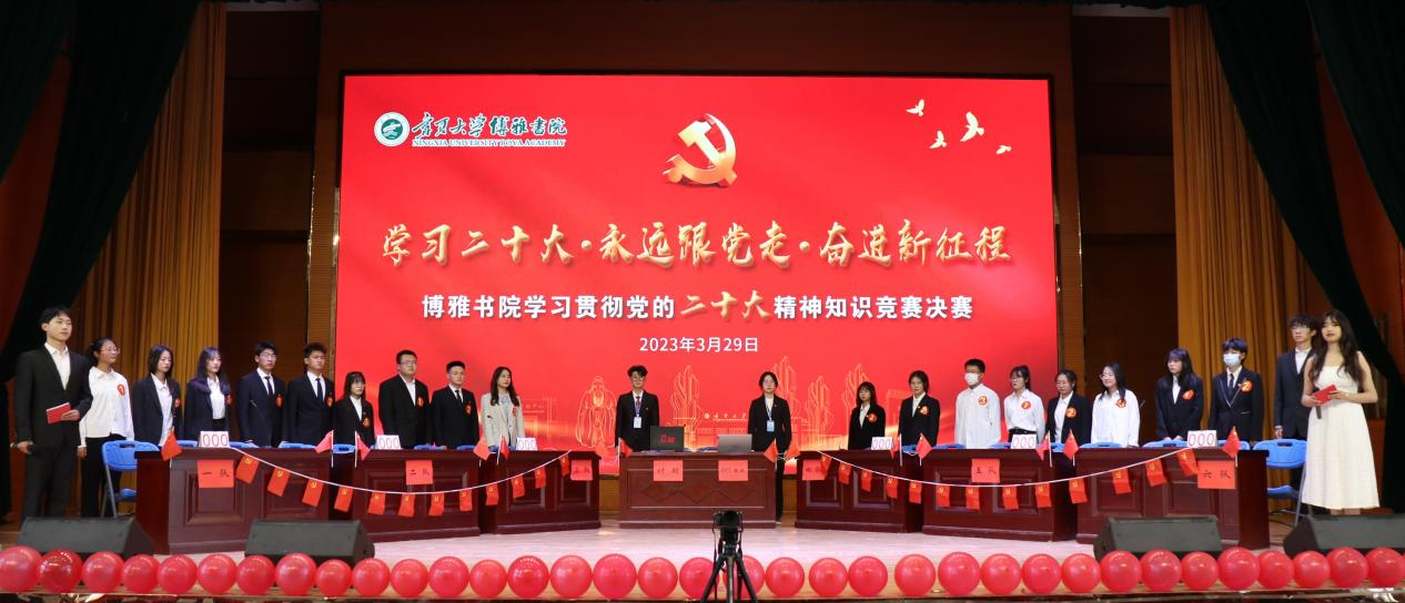 【澳门十大信誉网赌大全新闻中院】3月29日,博雅书院“学习党的二十大·永远跟党走·奋进新征程”知识竞赛决赛在应理报告厅举行。经过初赛和复赛的层层选拔,共有6支队脱颖而出,同台竞技。书院院长李举,党委副书记苏军峰,副院长聂义民、李治中,学院书院老师和两百余名学生共同观看本次比赛。